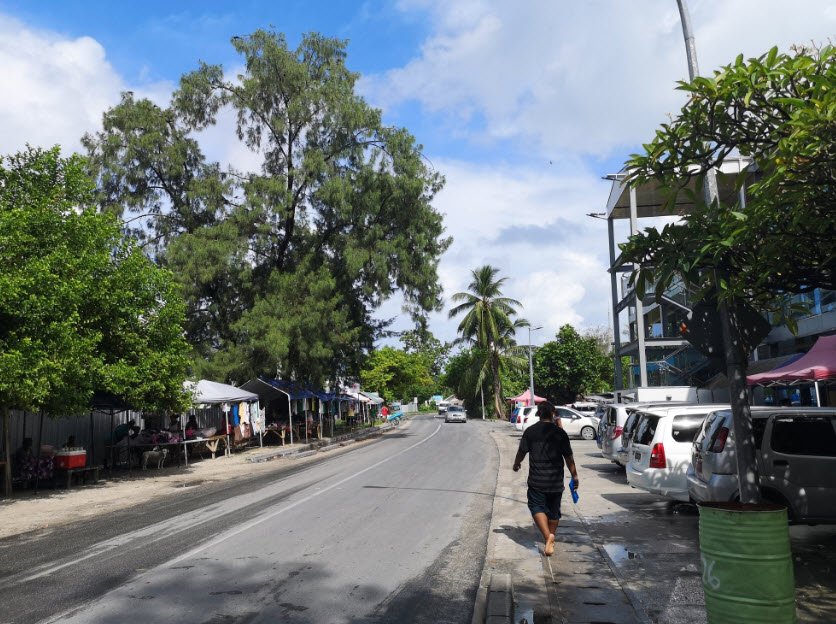 The square functions as a hub for both administrative and everyday activities, surrounded by essential services and landmarks. Bairiki itself is heavily populated, densely built-up, and holds many government ministries, diplomatic missions, and the Kiribati National Football Stadium. The town is connected by causeways to neighboring Betio and Nanikai, forming part of the continuous settlement along South Tarawa.