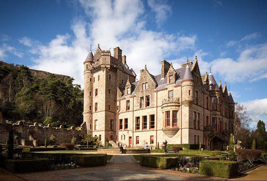 Belfast Castle, located on the slopes of Cave Hill in Northern Ireland, is a Victorian-era building completed in 1870.