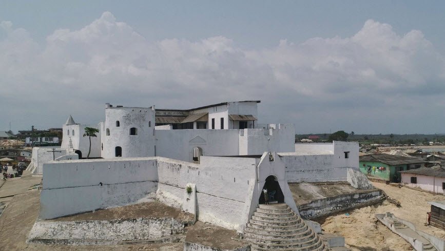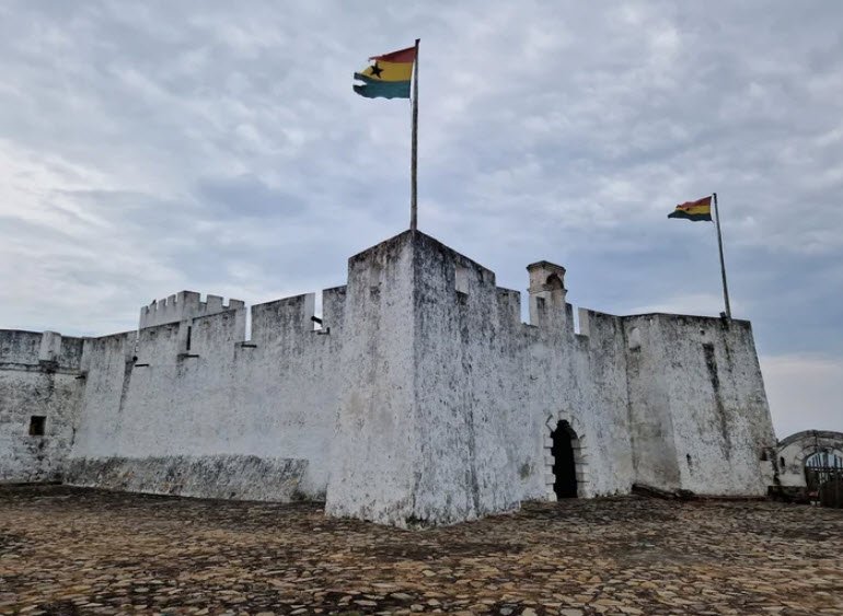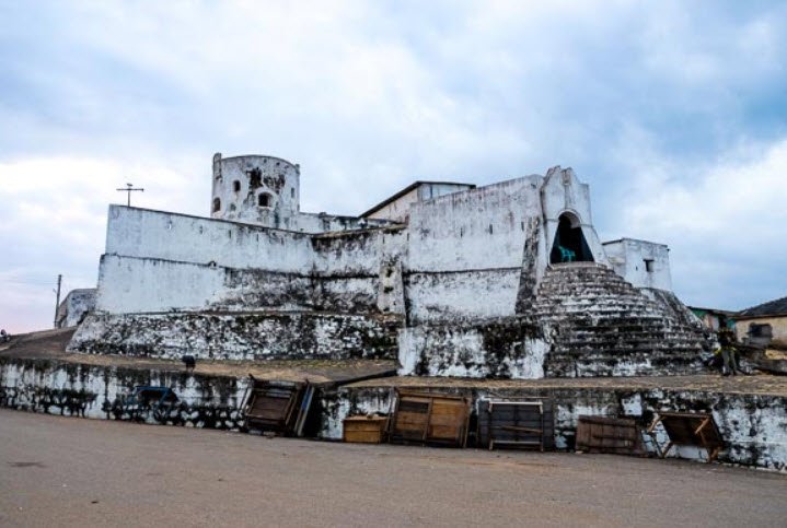 Fort Dorothea in Akwidaa, Ghana, was originally built as a small triangular lodge by the Brandenburgers in 1683 on a promontory at the end of a peninsula between the Suni River and the sea.