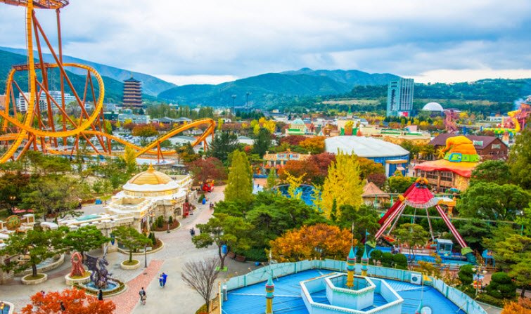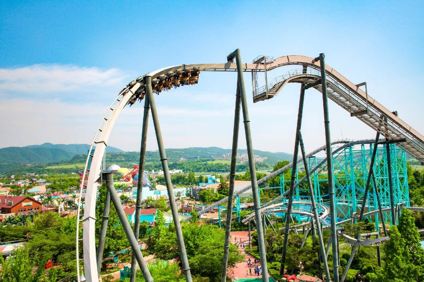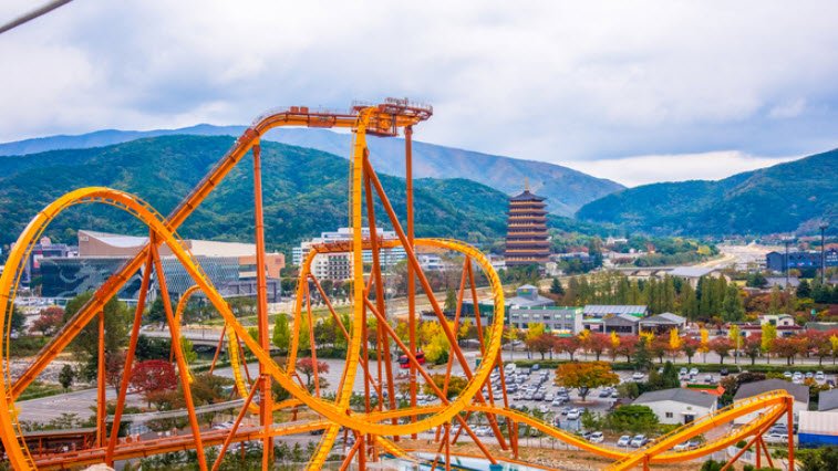 Gyeongju World in Gyeongju, South Korea, is a large amusement park featuring several themed zones including X-Zone, Snow Sled Garden for winter sledding, and Wizard Garden for children’s rides. It is home to thrilling roller coasters like Draken, Korea's first 90-degree dive coaster, and Phaethon, a highly praised inverted coaster. The park also offers water rides, live performances, and family-friendly attractions like bumper cars and playgrounds. Gyeongju World is popular for its mix of intense thrills and kid-friendly fun, with seasonal activities such as a water park in summer and ice sledding in winter, drawing visitors looking for varied entertainment options all year round.