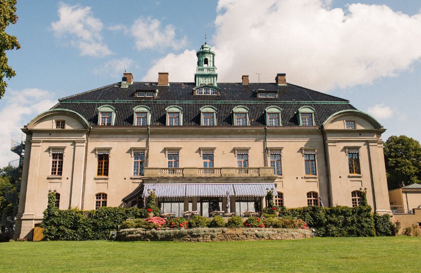 Constructed between 1914-1918 by engineer Carl Tranchell at a cost of one million SEK as Sweden's youngest castle, designed by architect Fredrik Sundbärg, it hosted WWII refugees before 1970 renovations turned it into a public venue with 115 rooms, pools, saunas, and event spaces.