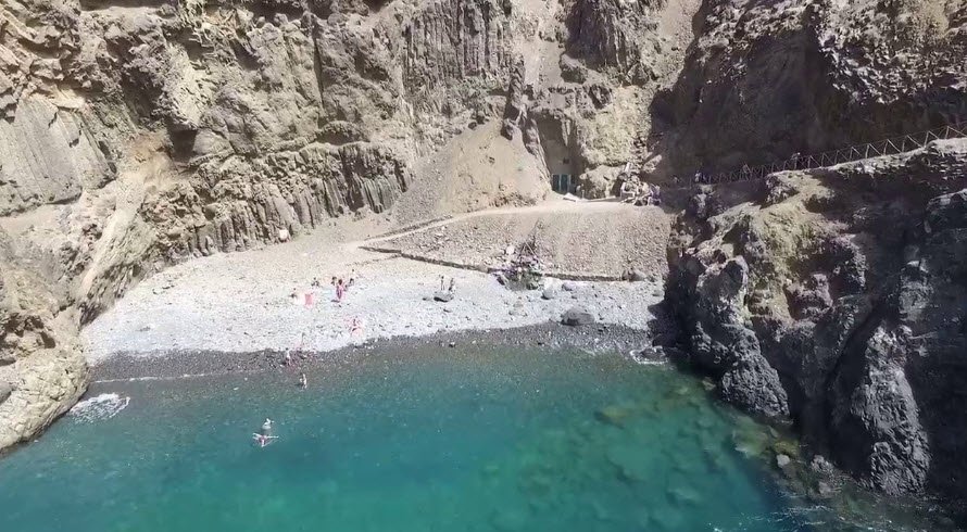Accessible via a steep, rocky path, it offers crystal-clear turquoise waters ideal for snorkeling and exploring the vibrant marine life along the rocky seabed. Unlike Porto Santo’s famous golden sandy beaches, Zimbralinho impresses with its rugged landscape and peaceful atmosphere, making it a favorite for visitors seeking solitude and natural beauty.