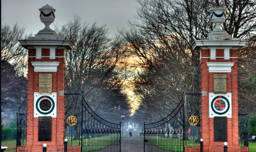 Notable landmarks include the Feldwick Memorial Gates, named after a local benefactor, which serve as a grand entrance. The park is a central hub for community activities, sports events, and nature enjoyment, making it a beloved and iconic landmark for residents and visitors alike.