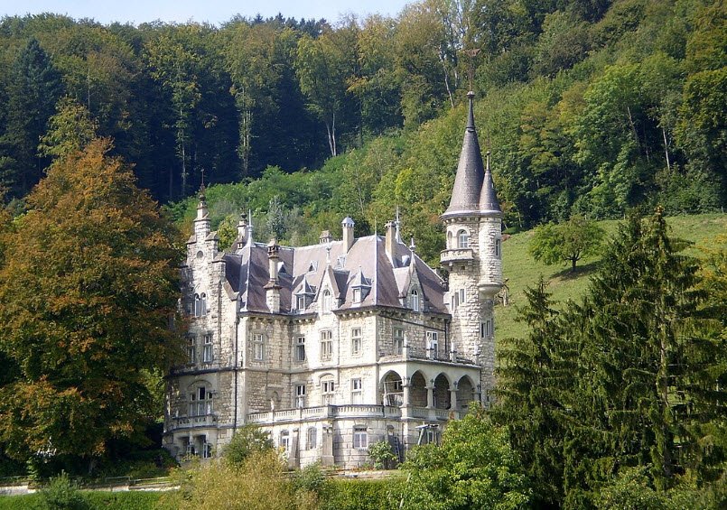 Schloss Wart is a striking neo-Gothic castle in Neftenbach, canton of Zurich, Switzerland, constructed between 1889 and 1891 by architects Ernst Georg Jung and Otto Bridler as a fin-de-siècle villa blending traditional Swiss elements.