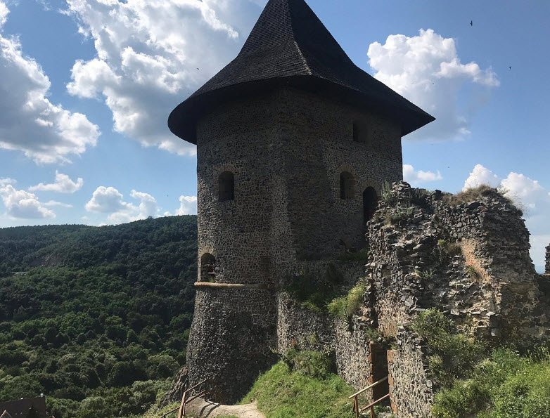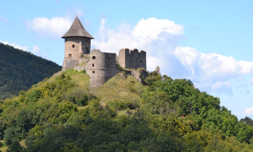 Šomoška Castle ruins are located in Šiatorská Bukovinka in Slovakia's Banská Bystrica Region, built before 1291 by Peter of the Kacsics family on a basalt hill as a border fortress in the Cerová vrchovina Protected Landscape Area. It changed hands to Matthew Csák in 1310, then the Szécsényi family until 1461 and Losonci owners, withstanding Turkish attacks in the 1550s through its steep terrain before occupation from 1573 to 1593, later fortified in 1618 and 1647–1655. Destroyed by imperial forces in 1709 during Rákóczi's anti-Habsburg uprising, the Gothic-Renaissance remnants—including cannon towers and a cistern—underwent conservation in the 1970s and renovations in 2025, popular for hikes near the Hungarian border.