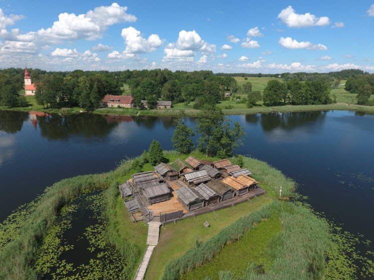 Āraiši Lake Dwelling Archaeological Park in the Vidzeme Region of Latvia is a unique open-air museum featuring the reconstructed remains of a 9th–10th century fortified settlement of the ancient Latgalian people, located on a small island in a lake.