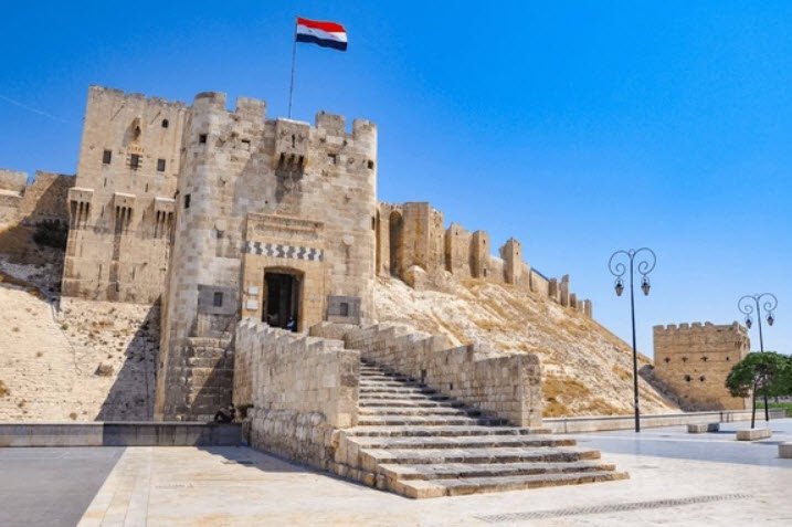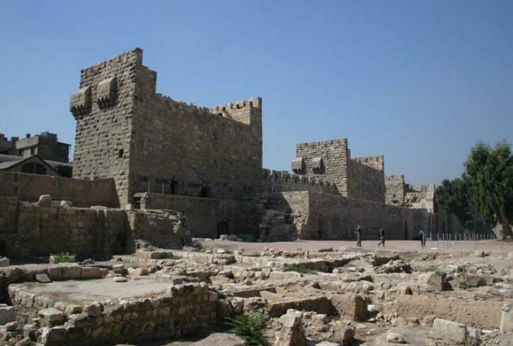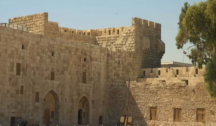 Unlike typical hilltop fortresses, this citadel sits on flat ground near the Barada River, with high, thick walls protected by 14 massive towers, designed to host trebuchets for defense.
