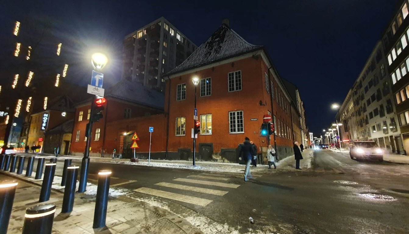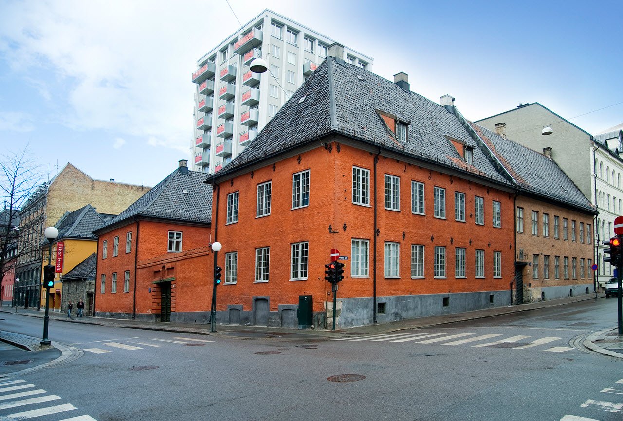 Garmanngården, located at Rådhusgata 7 in Oslo's historic Kvadraturen district, stands as one of the city's oldest surviving buildings, with structural remnants possibly dating to 1622—before the great fire of 1624 prompted Oslo's relocation and renaming to Christiania. It gained its current form around 1647 when landkommissarius Johan Garmann acquired it as a private residence, marked by dated anchor irons on the facade, and later housed notable figures like stattholder Just Høeg in the 1680s. Donated as Oslo's new town hall by King Christian VI in 1734, it served as a courthouse, meeting hall, theater, concert venue, police station, jail, and debt prison until functions dispersed by the mid-19th century; protected since 1927, it hosted Norwegian writers' organizations from 1970 to 2018.