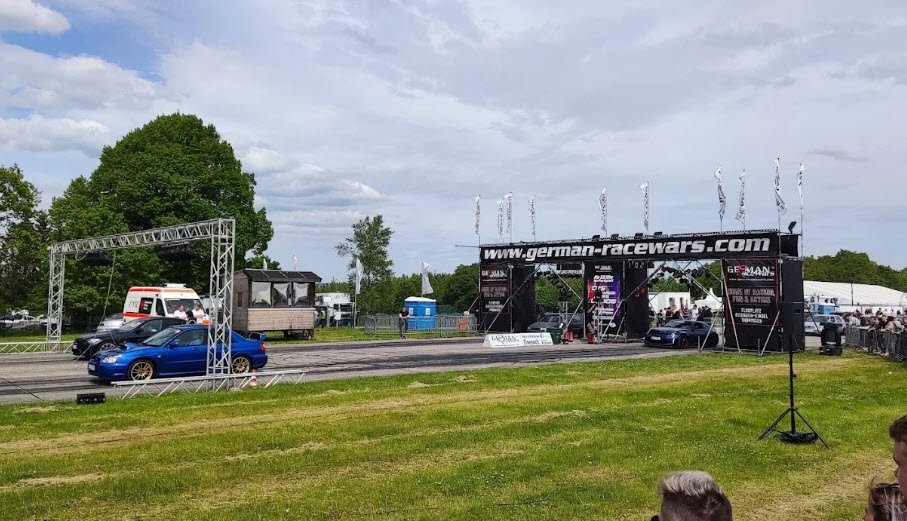 German Racewars is a popular annual motorsport and tuning event held at the Flugplatz Eisenach-Kindel airfield in Hörselberg-Hainich, Germany, featuring high-adrenaline quarter-mile drag racing day and night, professional drift competitions on separate tracks, stunt shows, burnout contests, and showcar displays.