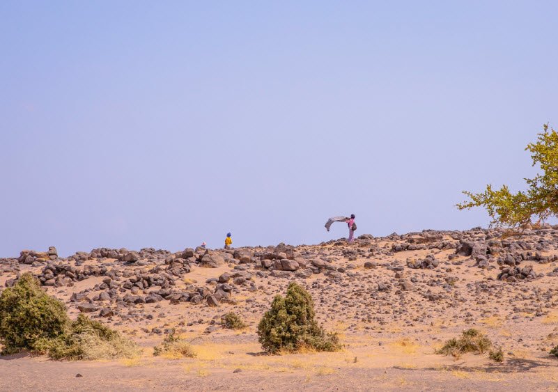 This low-elevation area, part of the Ethiopian xeric grasslands ecoregion, experiences seasonal flooding in July and September from heavy rains, temporarily turning clay soils into grassy expanses that support limited wildlife like Beira antelopes amid extreme heat with daytime highs often exceeding 35°C (95°F).