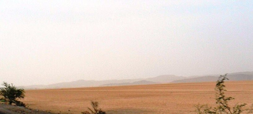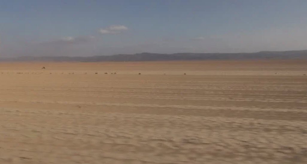 Grand Bara, located south of Djibouti City in southern Djibouti, is a vast arid desert plain spanning about 103 square kilometers, formed from ancient dried-up lake beds with expansive sand flats, sparse desert grasses, and scrub vegetation in a semi-arid landscape.