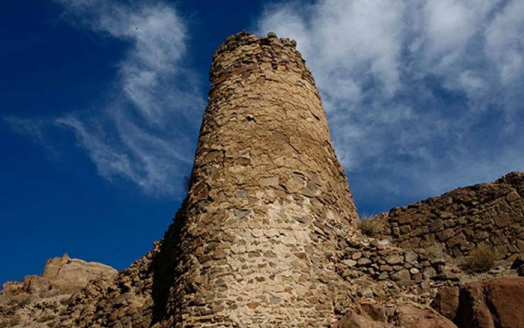 The fortress is perched on a high rock between two rivers and features two main parts: an inner section with towers, ramparts, and residential buildings, and an outer part containing stables and storehouses. Lambesar played a key role as a military base and stronghold for the Ismailis, resisting Mongol invasions until it fell around 1257 after a cholera epidemic weakened its defenders.