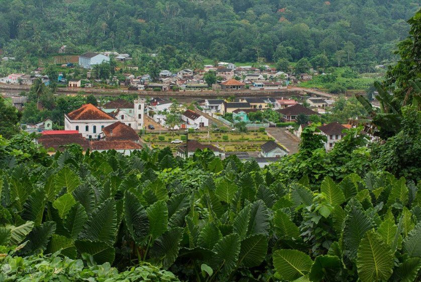 Santo António, the quaint capital of Príncipe Island's Autonomous Region in São Tomé and Príncipe, sits on the northeast coast with around 2,600 residents, making up about a third of the island's population in a tropical monsoon climate of warm temperatures averaging 25°C and heavy annual rainfall peaking in October.