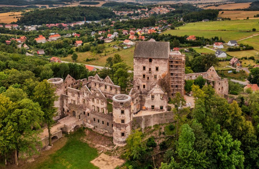 Expanded in Gothic style with cylindrical towers and later Renaissance-Baroque residential wings, it endured Czech conflicts and ownership by noble lines until WWII damage left picturesque ruins today attracting visitors to its hilltop perch amid scenic Sudeten landscapes.