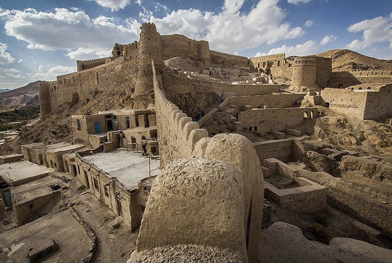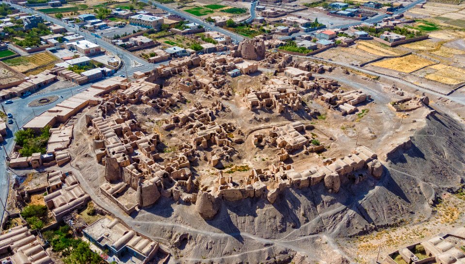 Tabas-E Mesina Castle in South Khorasan Province, Iran, is a mountain fortress believed to have been built during the pre-Islamic era, possibly by the Parthian Empire due to its circular design and the presence of ancient mounds nearby. The castle is strategically located on a gentle slope with mountains surrounding three sides, leaving only the southern side open to the Tabas plain.