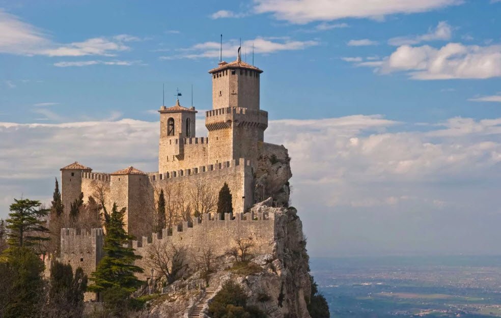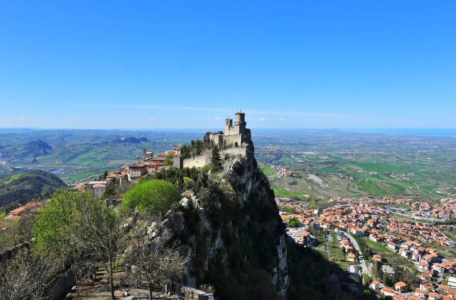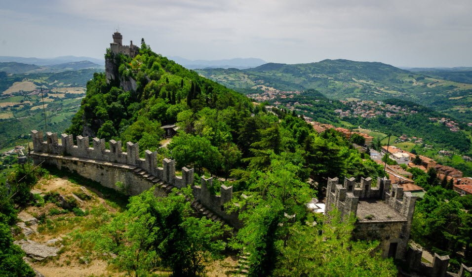 Three Towers of San Marino is located in Monte Titano, San Marino.