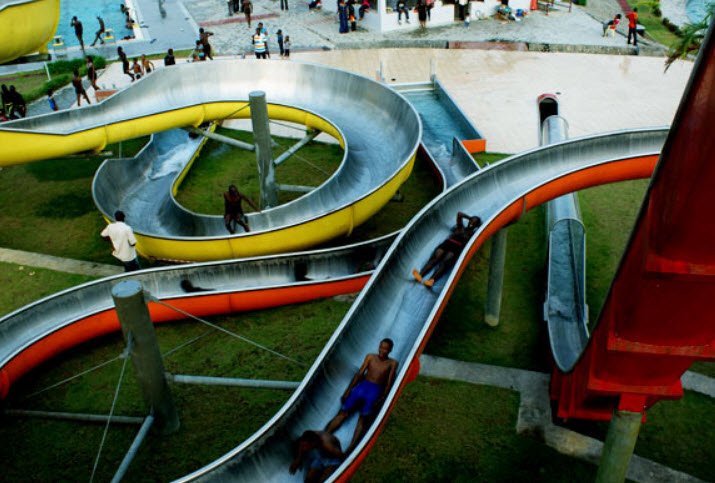 But Tinapa isn’t just about business—it’s also a fun place to relax and enjoy yourself. The Tinapa Waterpark is a major attraction, with exciting water slides, a lazy river, wave pools, and areas for kids to play. There’s also a games arcade with fun activities like bumper cars and mini basketball. For entertainment, the resort has a cinema with eight screens, a casino, nightclubs, and restaurants. One popular spot is the Fisherman’s Wharf, where visitors can enjoy local food by the lake. There’s even a marina for boat rides and a peaceful artificial lake for relaxing.