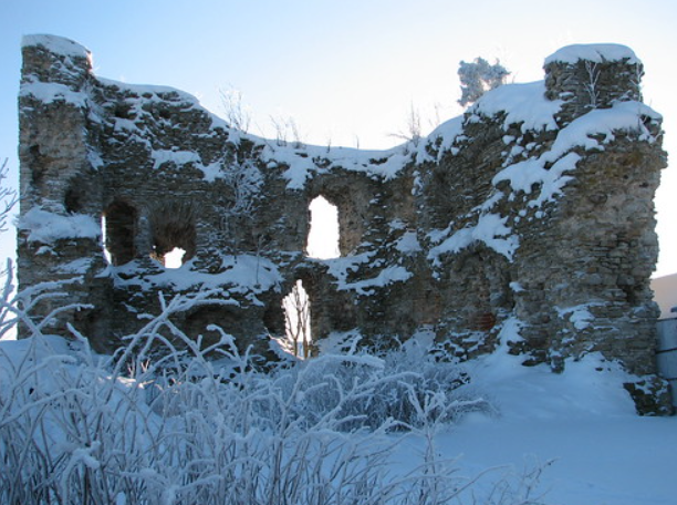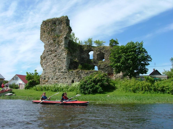 The first castle was destroyed the same year by the people of Pskov, and a new stone castle was constructed between 1427 and 1442, serving as the administrative center of the Livonian Order’s vogtei. The castle was heavily damaged during the Livonian War and later conflicts, eventually falling into ruins. Today, only parts of the thick castle walls remain, particularly on the northern side.