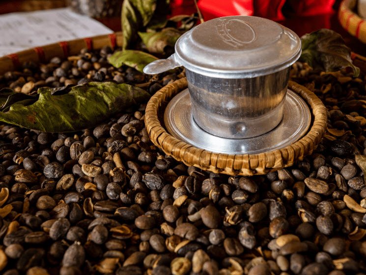 - Black drip coffee – Served in a slow metal filter called a “phin”