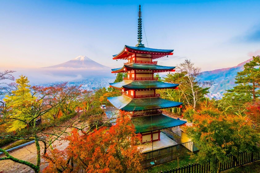 Chureito Pagoda: The classic view of Mt. Fuji with cherry blossoms in the foreground.
